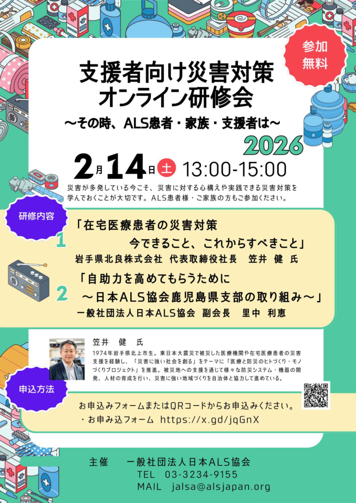 会員はもとより、会員ではない患者さん・家族さんやALSに関心がある方のご参加も歓迎します。多数のご参加をお待ちしています。